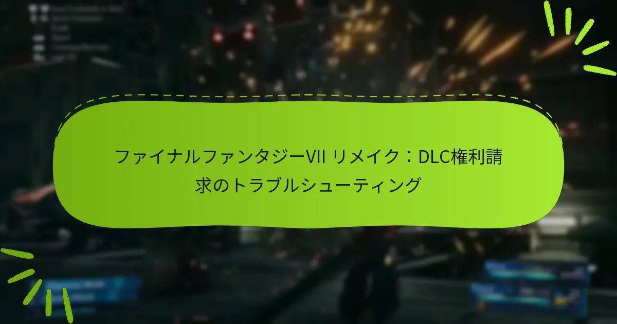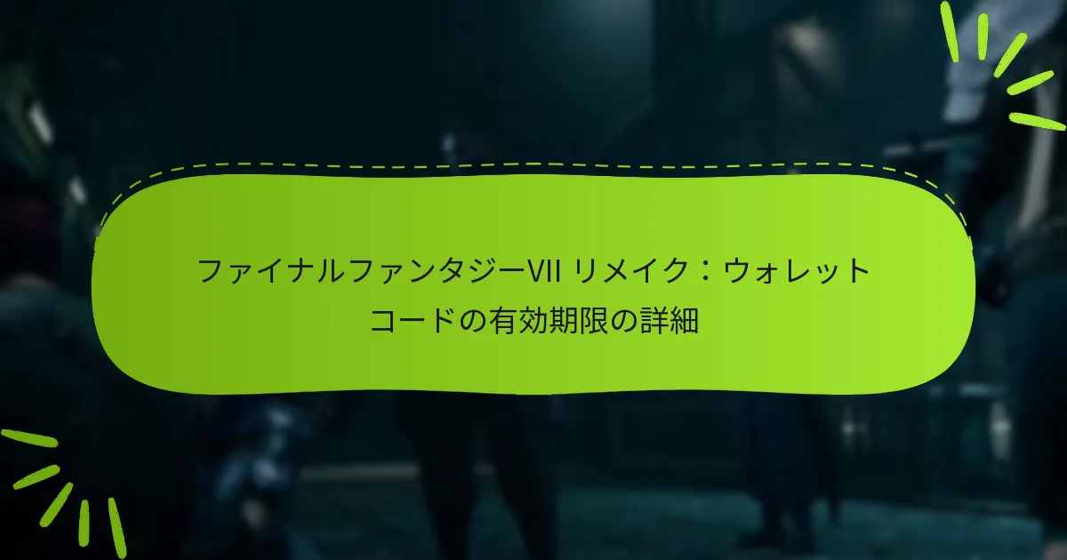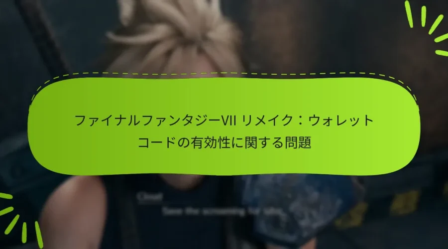 ファイナルファンタジーVIIリメイクのプレイヤーは、エラーメッセージや地域制限など、ウォレットコードの有効性に関連するさまざまな課題に直面することがよくあります。これらの問題を理解し、トラブルシューティング手順に従うことで、プレイヤーはコードの引き換えを妨げる問題を効果的に解決できます。開発者はこれらの継続的な懸念を認識しており、ゲーム体験を向上させるための解決策に取り組んでいます。 ファイナルファンタジーVIIリメイクにおけるウォレットコードの有効性に関する一般的な問題は何ですか? プレイヤーは、ファイナルファンタジーVIIリメイクにおいて、エラーメッセージ、期限、プラットフォームの互換性、地域制限、ユーザーから報告された問題など、ウォレットコードの有効性に関連するさまざまな問題に直面することがよくあります。これらの一般的な問題を理解することで、プレイヤーは効果的にトラブルシューティングを行い、解決することができます。 ウォレットコードの引き換え中に遭遇するエラーメッセージ ウォレットコードを引き換える際、プレイヤーはコードに問題があることを示すいくつかのエラーメッセージに直面することがあります。一般的なメッセージには「無効なコード」、「コードはすでに引き換え済み」、「コードの期限切れ」が含まれます。これらのエラーは、入力ミスやコード自体の問題から生じることがあります。 これらのエラーを避けるために、コードに誤字や不正確な文字がないかを再確認してください。プラットフォームのストアの正しいセクションにコードを入力していることを確認してください。以前に使用されたコードは再度引き換えることはできません。 場合によっては、コードがアカウントの地域に対して無効であることを示すメッセージが表示されることがあります。これは、コードが異なる国や通貨で購入された場合に発生する可能性があります。 期限とウォレットコードへの影響 ウォレットコードには通常、有効期限が設定されており、それが有効である期間を決定します。コードが期限切れになる前に引き換えられない場合、そのコードは使用できなくなります。プレイヤーは、ウォレットコードを購入または受け取る際に、常に有効期限を確認するべきです。 有効期限はさまざまですが、多くのコードは数ヶ月から1年の間有効です。資金へのアクセスを失わないように、できるだけ早くコードを引き換えることをお勧めします。 有効期限を把握するために、メモを取ったりリマインダーを設定したりすることを検討してください。この積極的なアプローチにより、ウォレットコードを使用する機会を逃さないようにできます。 異なるプラットフォームとの互換性の問題 ウォレットコードはすべてのプラットフォームで普遍的に互換性があるわけではありません。たとえば、PlayStation用に購入したコードは、XboxやPCでは機能しない場合があります。プレイヤーは、引き換えを試みる前に、コードが特定のプラットフォーム用であることを確認する必要があります。 さらに、一部のコードは特定のゲームバージョンに制限されている場合や、正常に機能するために特定のアップデートが必要な場合があります。常にコードの詳細を確認して、ゲームバージョンとの互換性を確認してください。 プラットフォームの互換性に関連する問題が発生した場合は、該当するプラットフォームのカスタマーサポートに連絡することで、明確な情報と支援を得ることができます。 ウォレットコードの使用に影響を与える地域制限 地域制限は、ウォレットコードの有効性に大きな影響を与える可能性があります。ある地域で購入したコードは、通貨、ライセンス、または流通契約の違いにより、別の地域では引き換えできない場合があります。 プレイヤーは、自分のアカウントの地域設定を確認し、購入したコードがその設定と一致していることを確認する必要があります。コードが自分の地域に対して無効な場合、引き換え時にエラーが発生します。 複雑さを避けるために、地域内の認可された小売業者からウォレットコードを購入することを検討してください。この方法は、地域制限に直面するリスクを最小限に抑えます。 一般的なユーザー体験と報告された問題 ウォレットコードの有効性に関するユーザー体験は、引き換えエラーや地域の互換性に対する不満を強調することがよくあります。多くのプレイヤーは、すべての指示に従ったにもかかわらず問題に直面したと報告しており、混乱や不満を引き起こしています。 さらに、一部のプレイヤーは、信頼できるソースから購入したと信じていたにもかかわらず、地域制限のためにコードが機能しなかった経験を共有しています。これは、ウォレットコードのソースと互換性を確認する重要性を強調しています。 これらの問題を軽減するために、プレイヤーはフォーラムやコミ