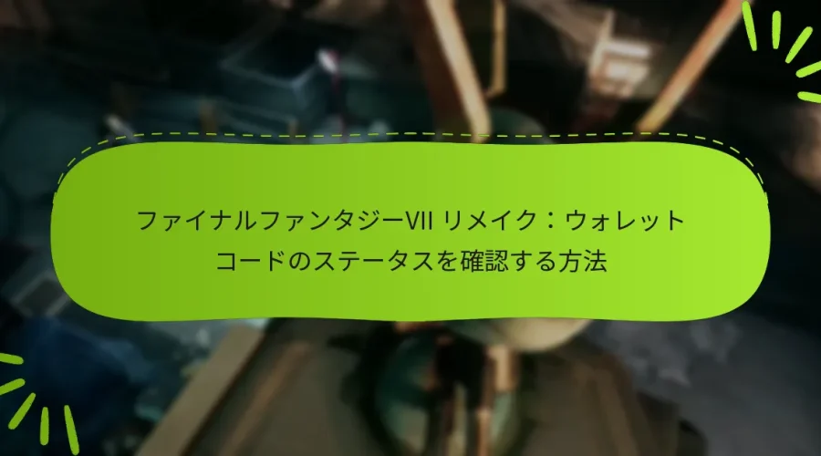 ファイナルファンタジーVII リメイクでは、ウォレットコードを使用することで、プレイヤーはゲーム内通貨や特別なアイテムをアンロックでき、全体的な体験を向上させることができます。ウォレットコードのステータスを確認するには、関連するプラットフォームでアカウントにログインし、いくつかの簡単な手順に従ってその活動を確認してください。問題が発生した場合は、コードが正しく入力されているか、有効期限が切れていないかを確認し、その後トラブルシューティングガイドを参照してさらなるサポートを受けてください。 Key sections in the article: Toggle ファイナルファンタジーVII リメイクにおけるウォレットコードとは? ウォレットコードの定義と目的 ゲーム内でのウォレットコードの機能 利用可能な一般的なウォレットコードの種類 ウォレットコードを使用する利点 ウォレットコードの潜在的な制限 ウォレットコードのステータスを確認するにはどうすればよいですか? ウォレットコードのステータスを確認するためのステップバイステップガイド ステータスを確認するために必要なツールまたはアカウント ステータス確認後の期待される結果 ウォレットコードが機能しない場合はどうすればよいですか? 一般的なウォレットコードの問題のトラブルシューティング カスタマーサポートへの連絡 既知の問題や障害の確認 ファイナルファンタジーVII リメイクのウォレットコードをサポートするプラットフォームはどれですか? …
