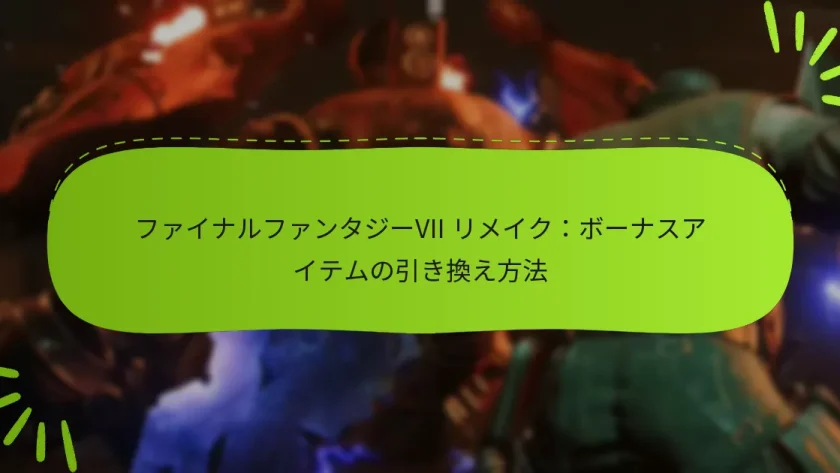 ファイナルファンタジーVIIリメイクでは、ボーナスアイテムの引き換えは、ゲーム体験を向上させる簡単なプロセスです。ボーナスを成功裏に受け取るためには、適格基準を満たし、PlayStation Storeにアクセスし、提供された引き換えコードを入力するためのゲーム内指示に従ってください。これらのステップを完了することで、武器、コスメティックスキン、ゲーム内通貨など、さまざまなエキサイティングなボーナスコンテンツを楽しむことができます。