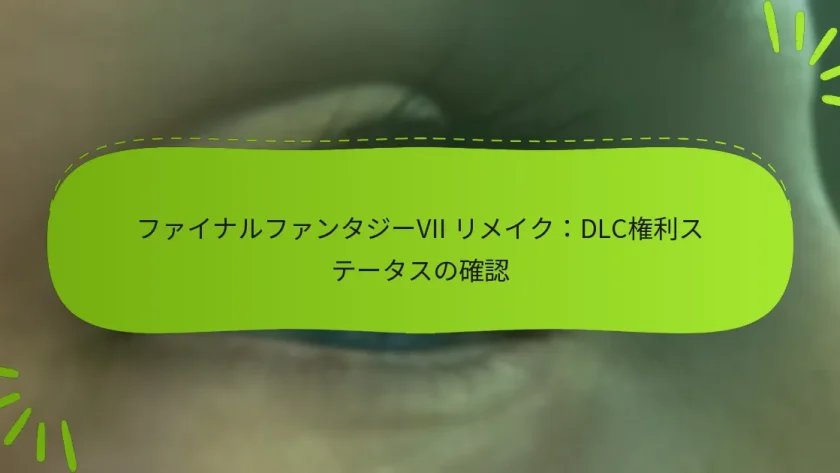 ファイナルファンタジーVIIリメイクにおけるDLC権利状況は、プレイヤーがダウンロードコンテンツにアクセスできるかどうかを確認することを指します。この状況は、プレイヤーが購入したり含まれているDLCを使用する権利を持っていることを保証し、ゲームプレイ体験やコンテンツの利用可能性に影響を与えます。